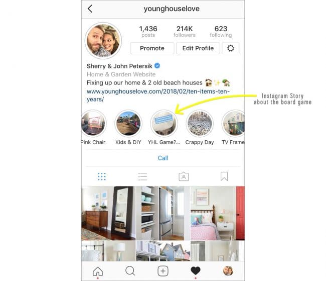 - If you want to see all of the board game excitement that ensued on Instagram, Sherry archived that “InstaStory” on our profile so it won’t disappear. Just visit our profile page on your mobile IG app and scroll through the little circles (see above) until you come to the one that says “YHL Game?” If you click that, you can watch all of the fun board-game-related hijinks thanks to that fateful MermaidFitJess dream.
