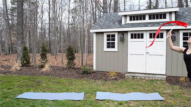 Then we’ll mix it up with some lower intensity yoga, followed by some high energy aerobic stuff. The move below is a Sherry favorite. It works those all-important paint-rolling muscles.