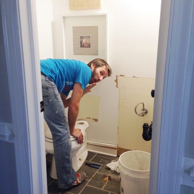 - Again, we don’t have great documentation of this remodel because it was while we weren’t blogging. But here I am coyly in the midst of demo. Clearly I wouldn’t have been jovially pausing to make this ridiculous face if I knew what was ahead of us…