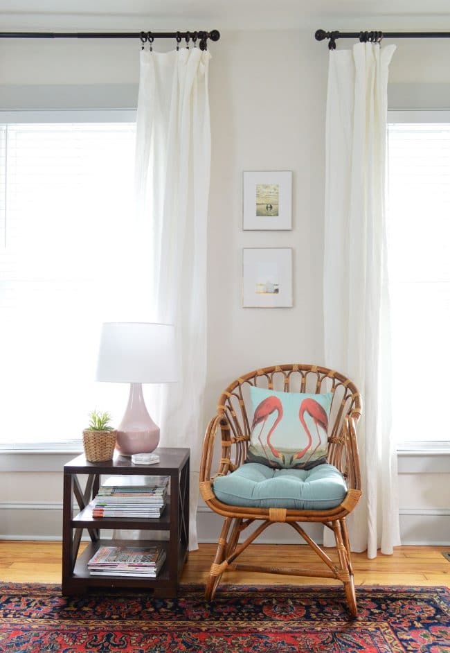 curtains (we cut the tabs off) / rods / lamp / similar side table / similar chair