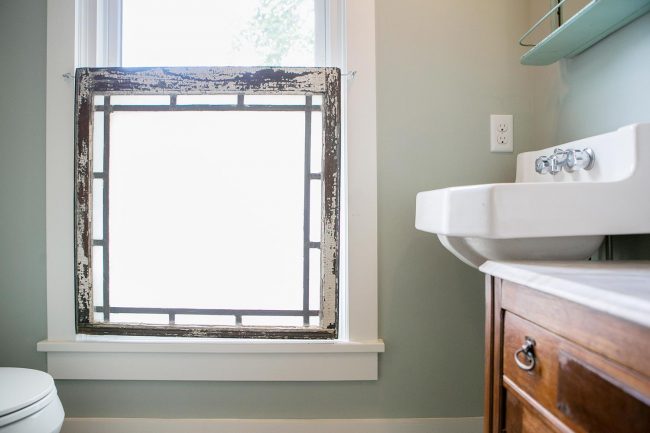 How charming is that old frosted window they hooked in front of the exterior window for flair? LOVE.