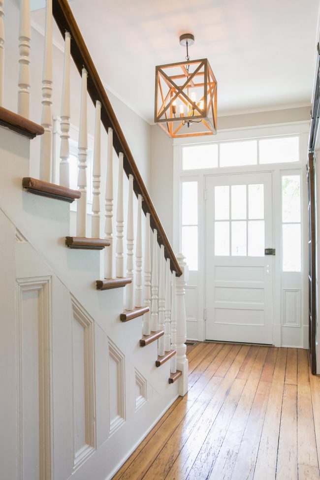 There’s lots to be envious of in this foyer, but the original millwork that survived on the side of the steps is one of my favorite details (so rare when rot spares the perfect thing – it reminds us of this miracle at our pink house). Also, check out the amazing light that comes in through that front door situation. Gimme allllll the glass.