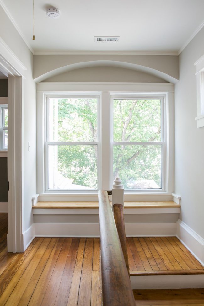 Speaking of getting to save gorgeous original details, the hardwood floors, stairs, and handrail were all refinished to enhance the lovely old pine throughout the entire house. (And you know we love old pine floors…).