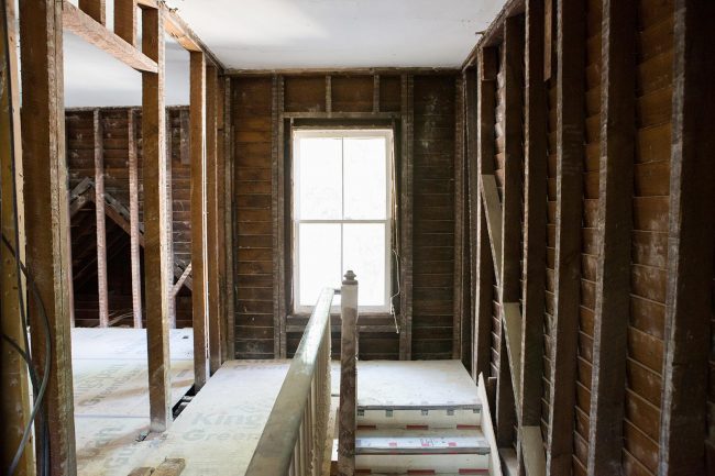 LOVE how much they reused and how many other old items were looped into this home’s history – via ebay, salvage, and beyond! Here’s a demo shot of the upstairs hall: