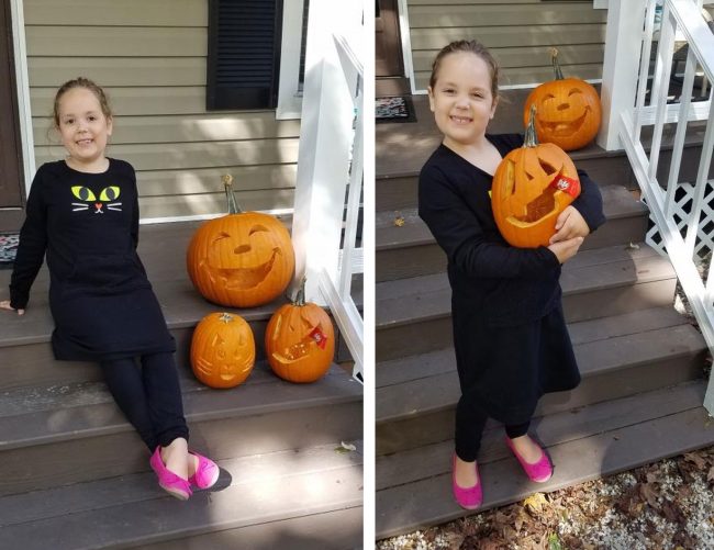 - And below are the photos Ellie’s mom sent us of her pumpkins on the porch.