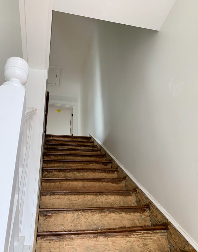 - It made a HUGE DIFFERENCE when we raised the ceiling during the renovation (and moved the wall at the top of the stairs)- so now it looks a lot more spacious! Don’t mind the stairs themselves, we still need to paint the risers.